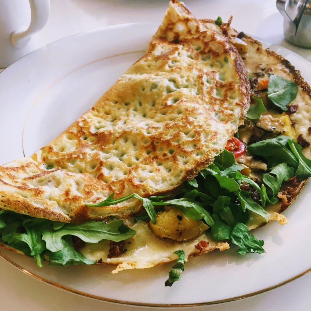 1. Shiitake, potato + bacon crepe or strawberry crème brûlée crepe at Arugularium