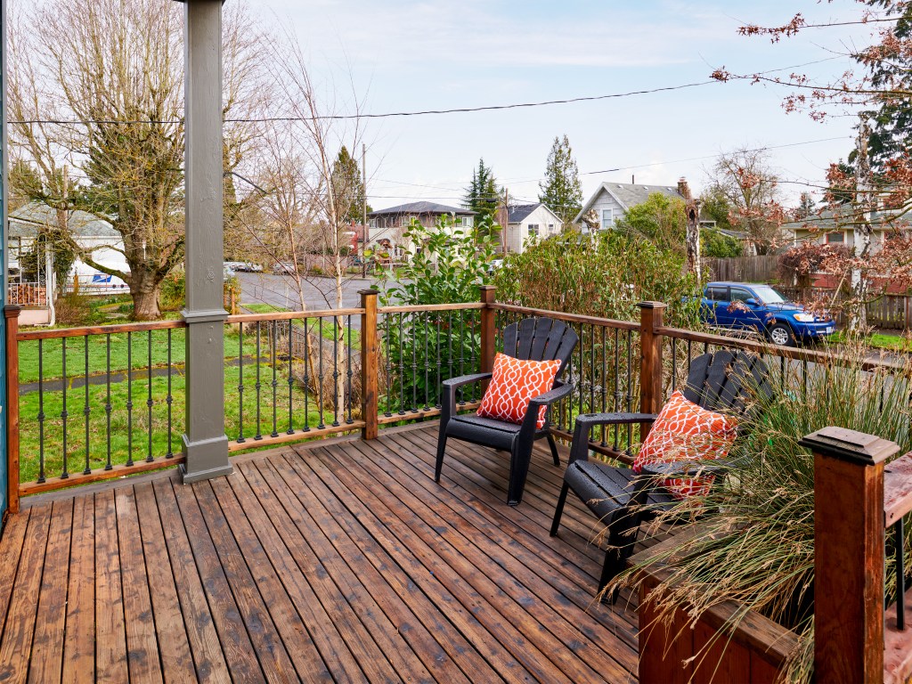 This 2011 build has a perfect front porch for waving to dog-walking neighbors. Or drying off after a dip in the Kennedy School Soaking Pool which is free to residents of this street through the Free Neighborhood Soakers program (just show ID with address). Score!