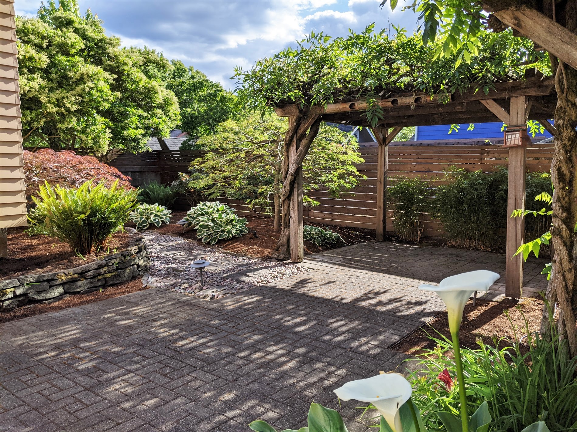 Wood floors & built-ins abound with detailed craftsman millwork adding to the charm factor. Snuggle by the wood-burning fireplace or host a feast in the formal dining room with an awesome built-in buffet. The galley-style kitchen boasts SS appliances (Hello, Viking Pro stove) and a breakfast bar with an adjacent family room that overlooks the backyard’s patio, pergola & Japanese maples.