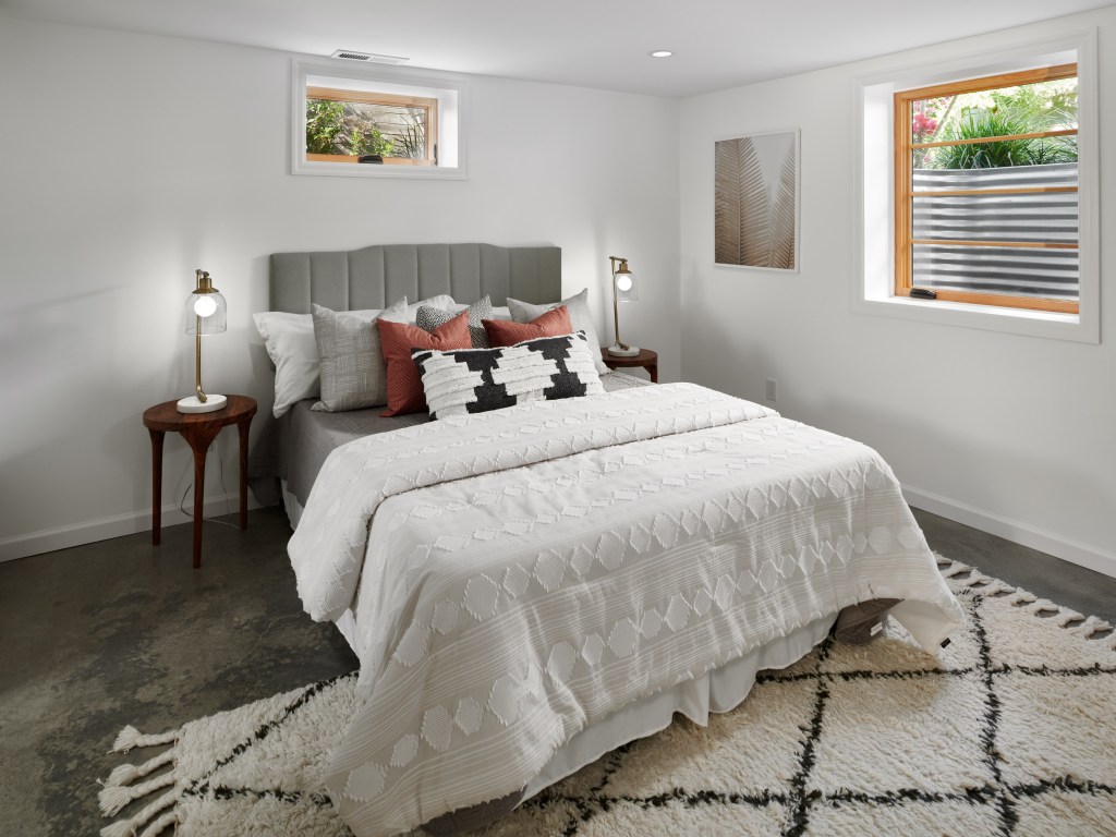 - New ensuite in sunny lower level with polished concrete floor