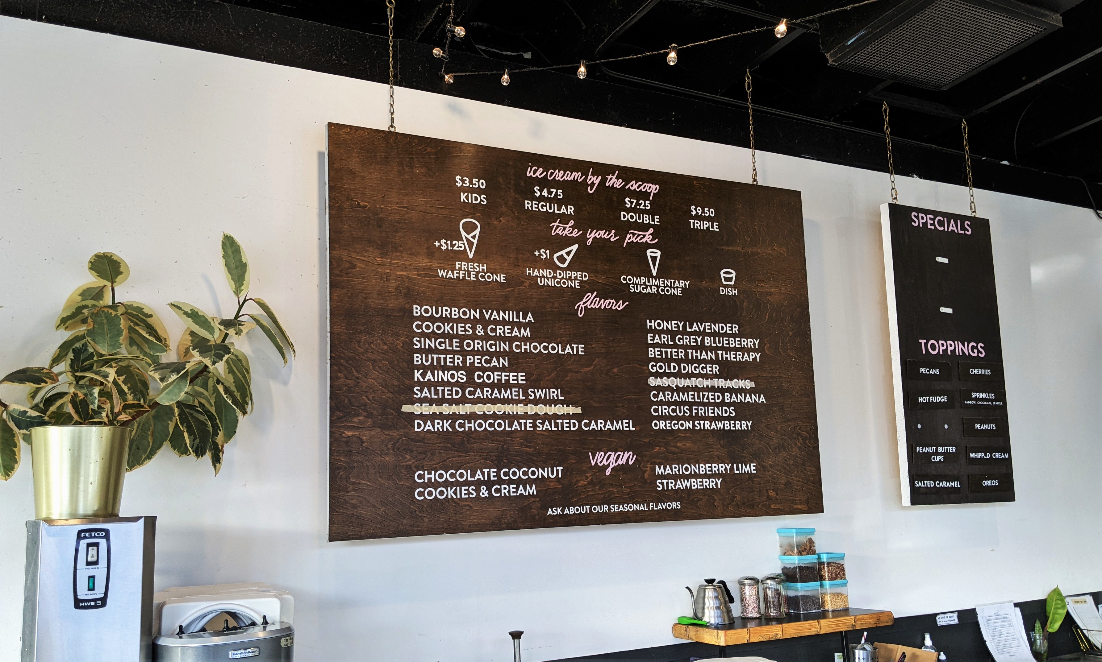 Cloud City Ice Cream is so, so good and while their most popular flavor is the Sea Salt Cookie Dough, my personal favorite is always going to be anything coffee-flavored: Kainos Coffee. Made with locally-roasted beans, I strongly encourage you to give this one a try especially when the Cookie Dough sells out! LOTS of Vegan options too.