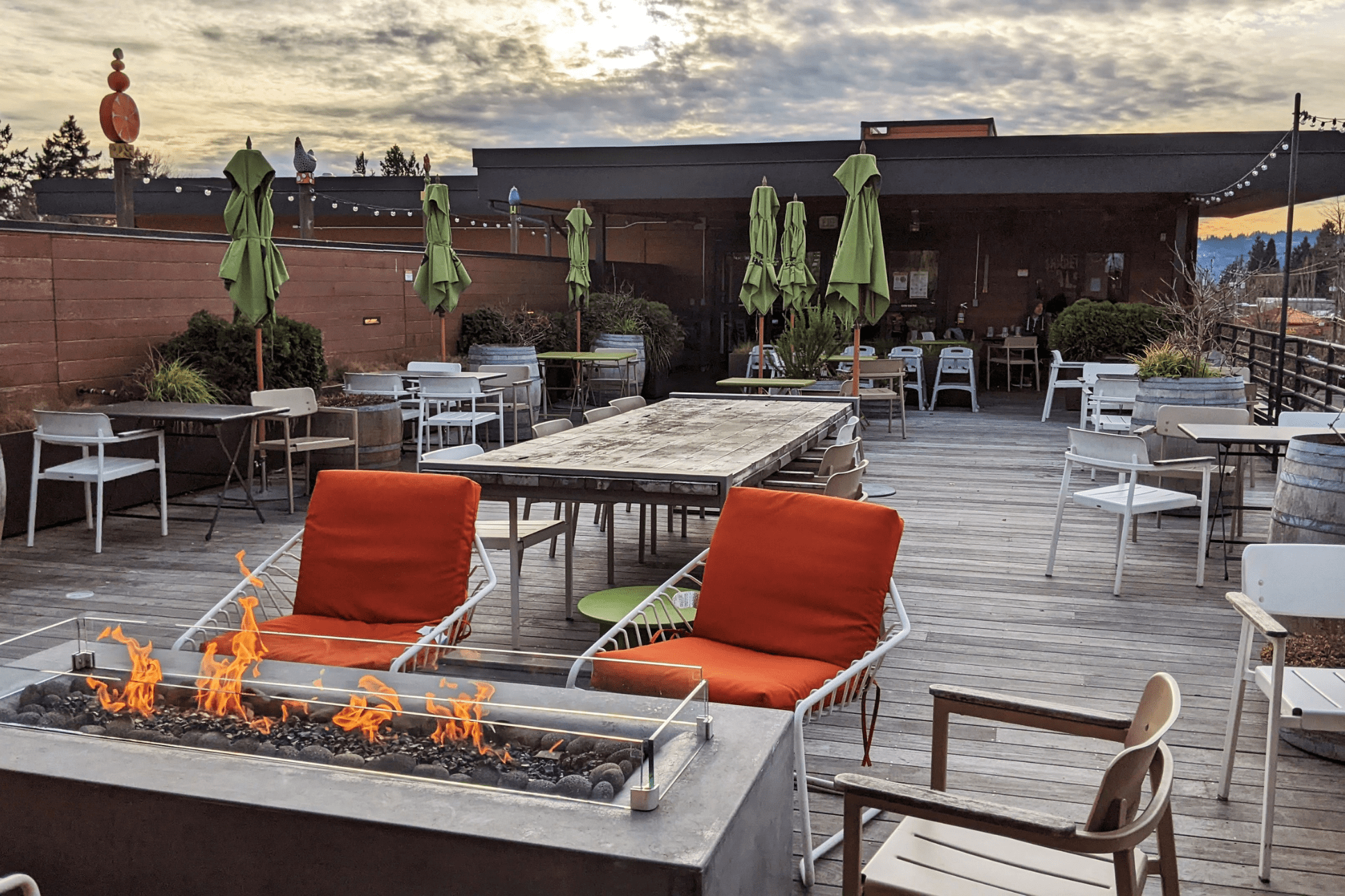 I have to whisper this next one because I don’t want tooooo many people to know … but one of the best SE PDX spots to watch sunset over the city happens to be on the rooftop of the Woodstock New Seasons! Grab your favorite deli meal or some fancy cheese and crackers and a bottle of wine and head upstairs. There’s covered space, tables galore and a firepit to keep you warm. And there’s a little bar right inside for an easy re-up for round 2.