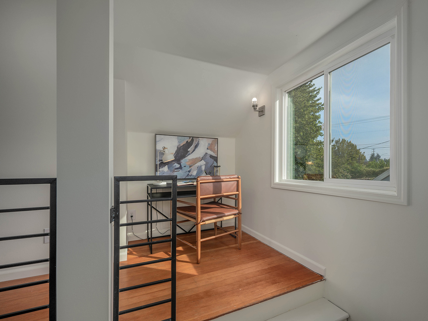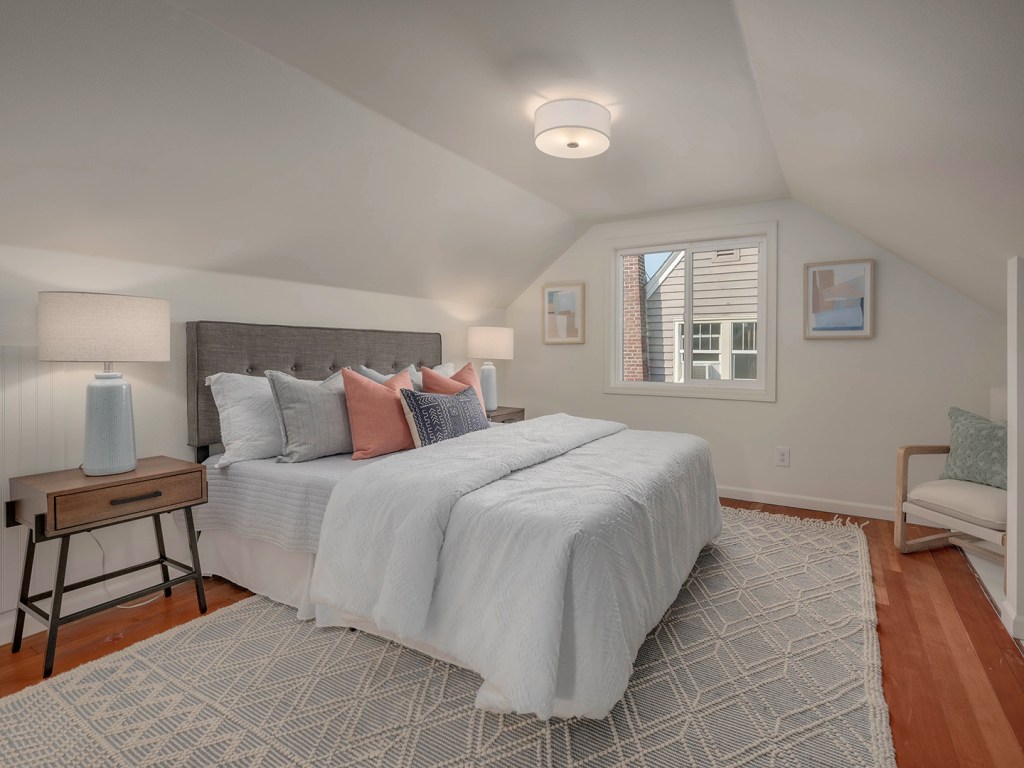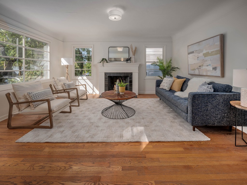 This home has an ideal floor plan: 2 spacious beds and a full bath on the main level while the upstairs is a dreamy primary suite. The home boasts original oak hardwood floors, a cozy fireplace & open concept living.