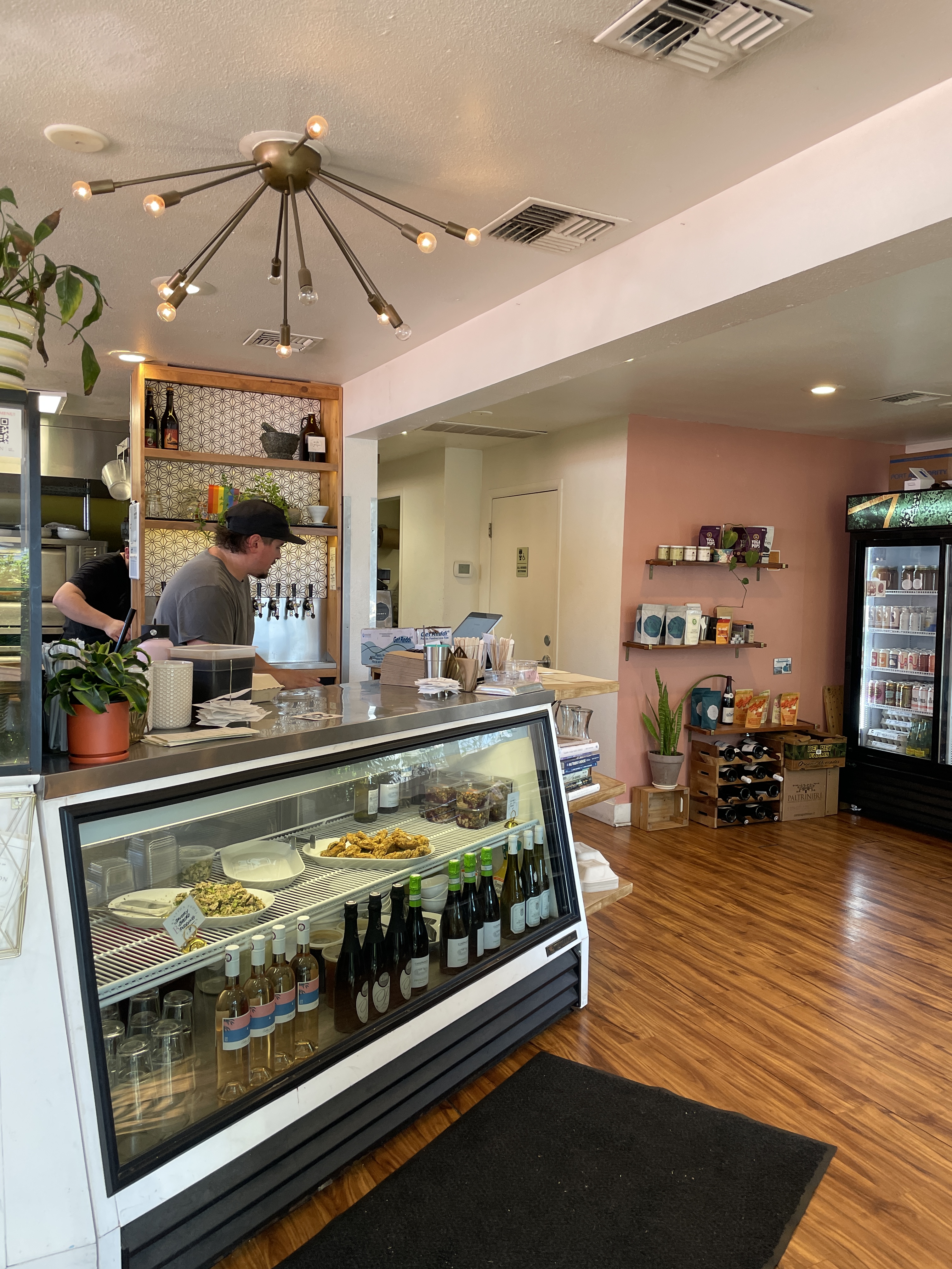 The Portland Bottle Shop for specialty wine, beer and sandwiches. (Burgers, portobello sandwiches, salmon dip, kale radicchio caesar & a great rotating tap selection of local brews.)