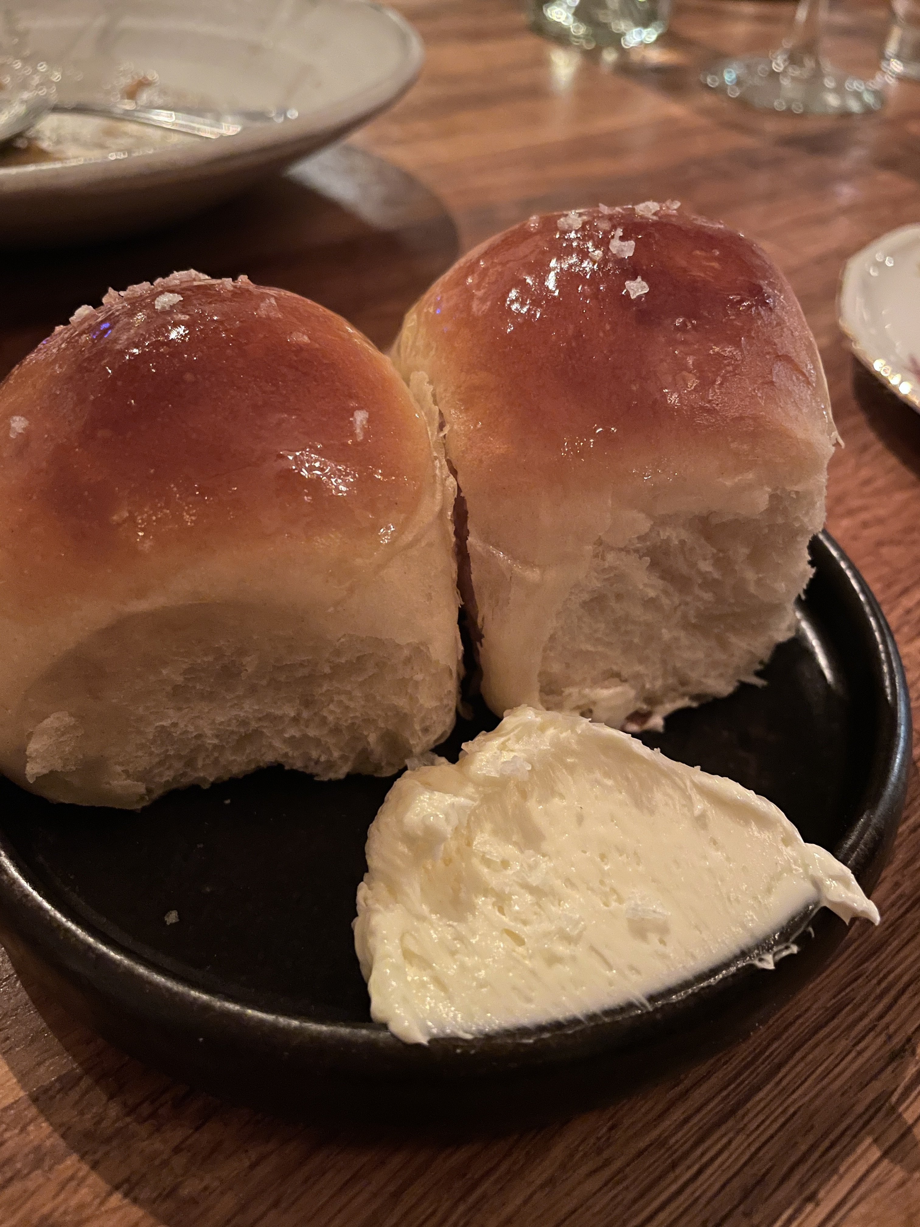 Pictured here: Oysters; the fluffiest rolls; Dungeness crab toast; Hama Hama Manila clams with bok Choy; Hamachi crudo