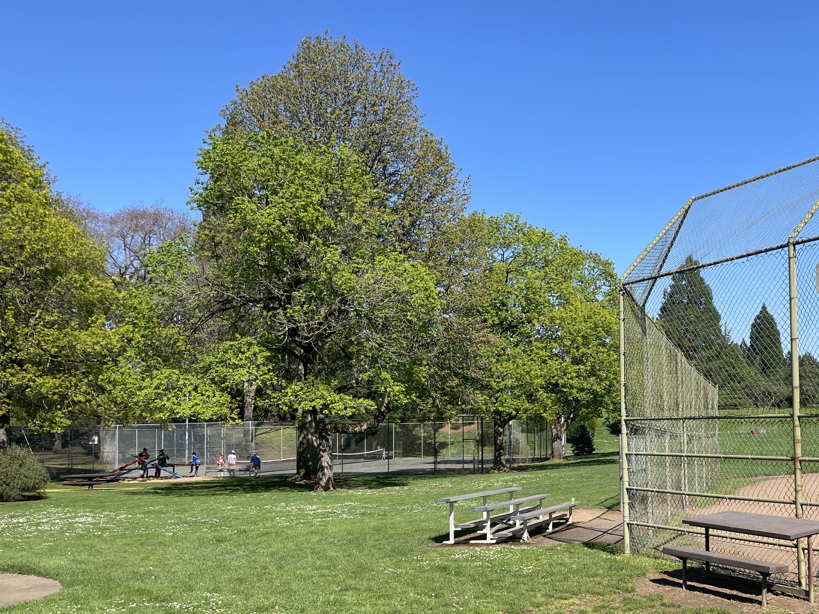 Ok, for those following along at home we’ve eaten pizza, cioppino and shawarma so far… we are now sufficiently fueled for a game or 10 of pickleball and lucky for us, Rose City Park’s tennis courts now have pickleball lines! You just have to bring your own net. Call me to set up a game, any day!
