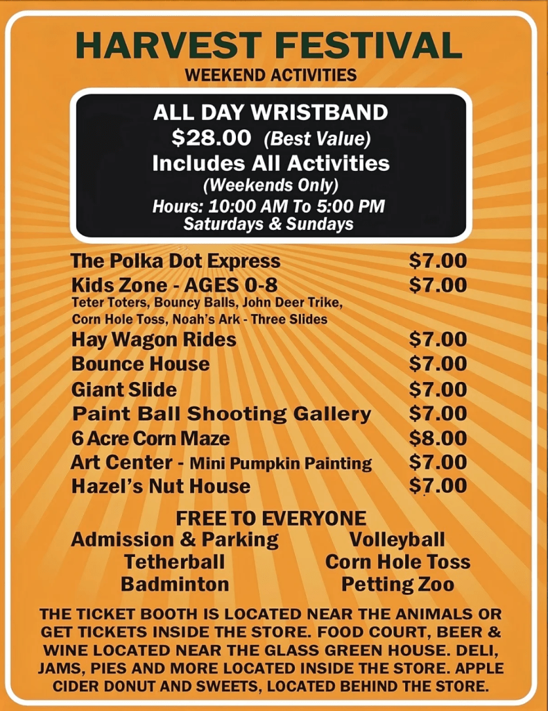 • Highlight: The Maize corn maze, redesigned each year, is a big hit for all ages!