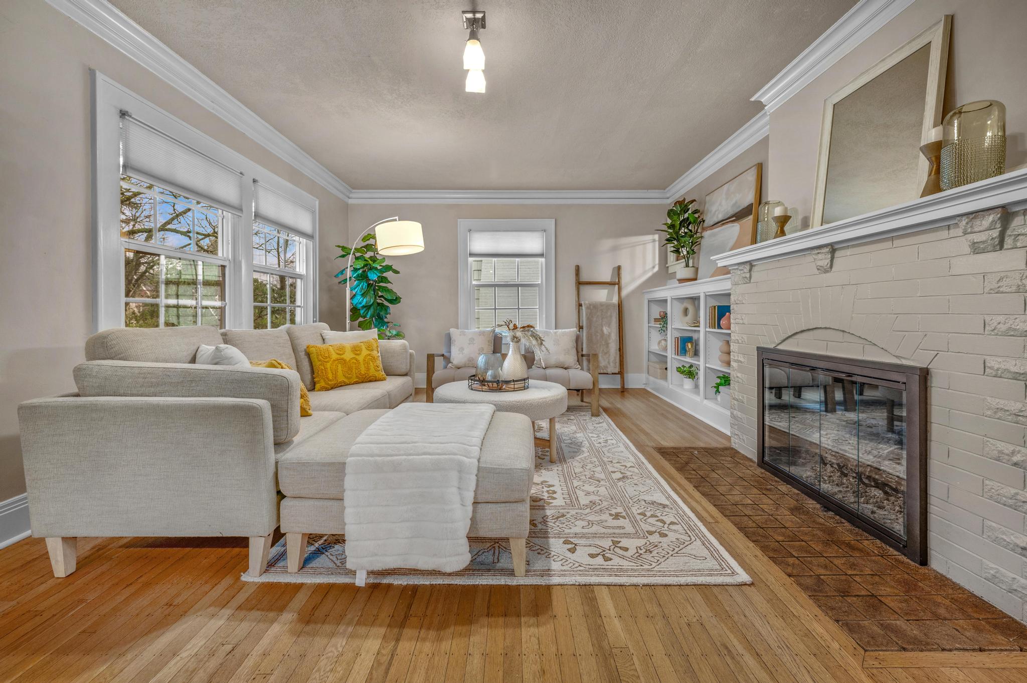 - Original hardwood floors & rich wood trim